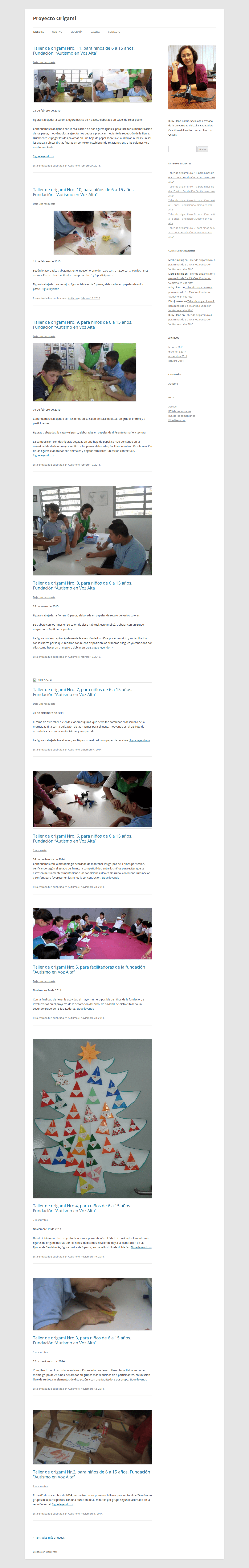 Origami Project (proyectoorigami.org) is a non-profit foundation created by the sociologist Ruby Llano García that tries to help kids and teenagers with autism to develop concentration and fine motion skills. Ruby is currently working with the foundation “Autismo en Voz Alta” at Caracas-Venezuela where she puts in practice her revolutionary treatment. The site was created in 2015 using WordPress.