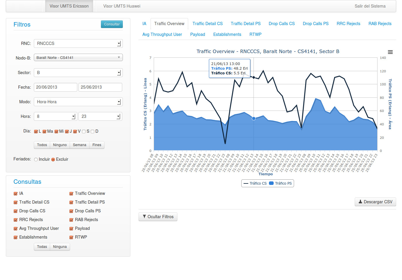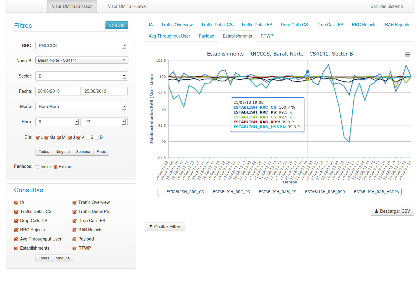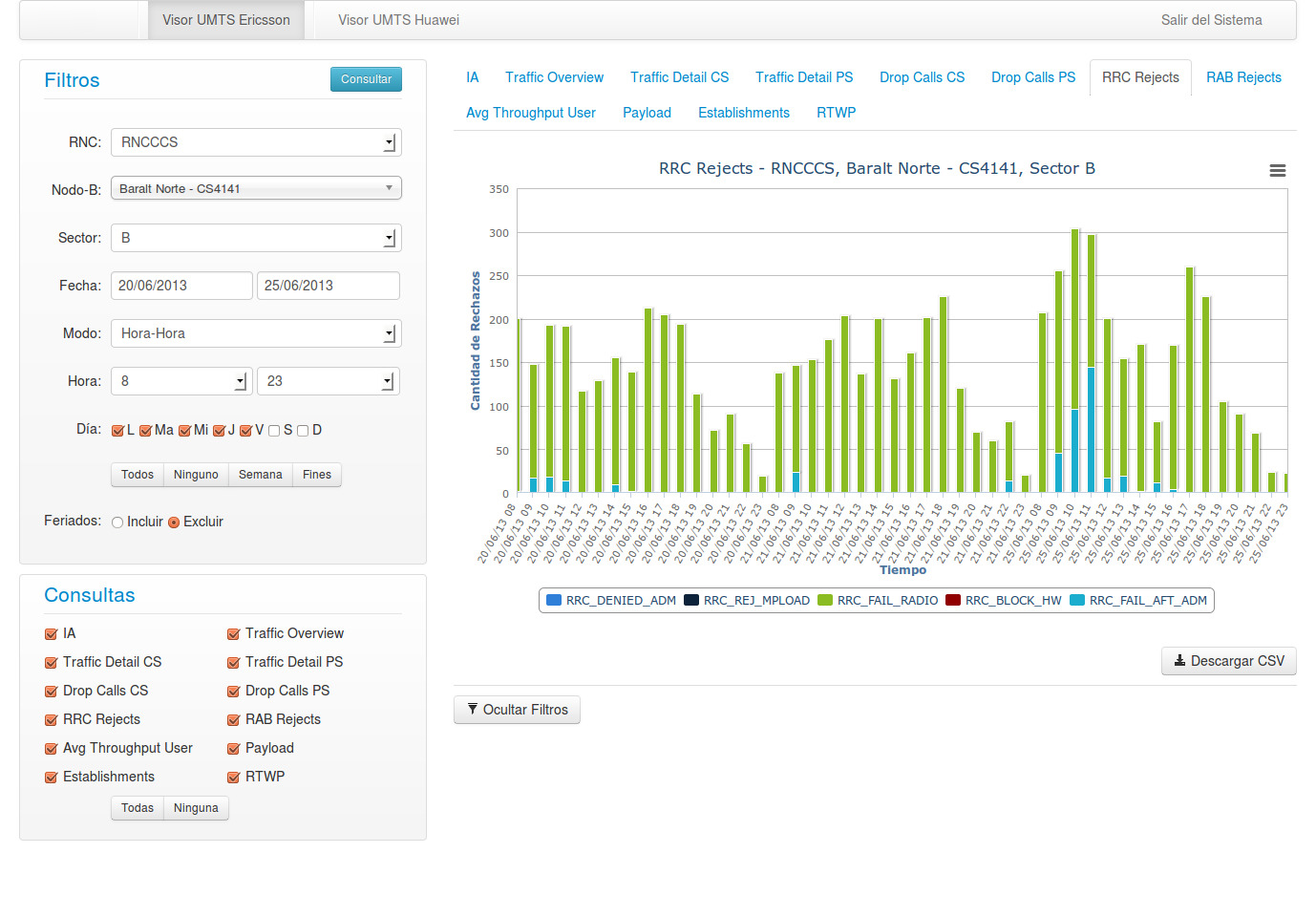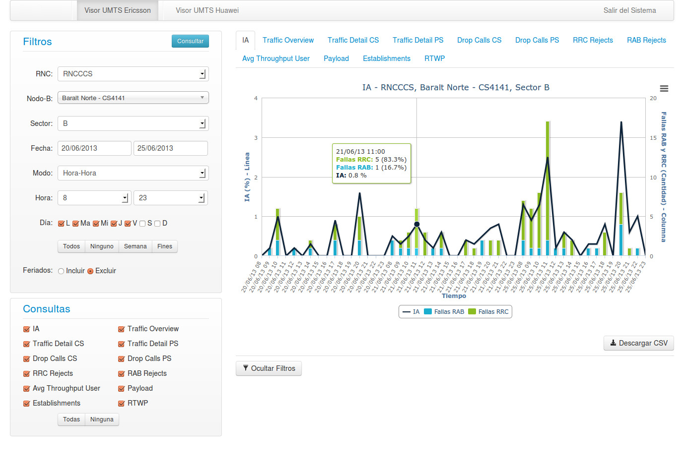 Radar is a web application dedicated to monitoring the performance of a Radio Access Network of any telecommunication company. In its first stage it was limited to the WCDMA technology from the vendors Ericsson and Huawei.